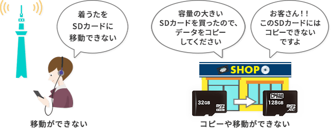 - 着うたや着うたフルの楽曲データを内蔵メモリからSDカードに移動できない。