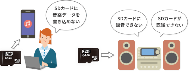 CPRM対応機器にCPRM非対応カードを使用すると以下のような不具合を起こす可能性があります。